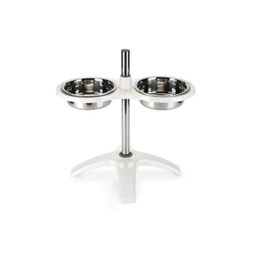 Beeztees Verstelbare Voederstandaard Orino is een mooie standaard met 2 roestvrijstalen voerbakken met een diameter van 20 cm. De standaard is gemakkelijk te verstellen en te vergrendelen naar de juiste hoogte voor uw hond (van 12 tot 50 cm hoog). Hierdoor kan uw hond in een ontspannen, staande houding genieten van zijn / haar eten of drinken. De voet van de standaard bevat een anti-sliplaag waardoor deze niet snel verschuift.