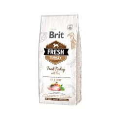 Brit Fresh Turkey with Pea – Light Fit & Slim is een complete voeding voor volwassen honden die weinig actief zijn, overgewicht hebben of senioren. Deze honden hebben minder behoefte aan calorieën en daarom sluit deze voeding van Brit hier perfect op aan. De voeding bevat verse kalkoen, erwten, appelbes en paardenbloem.