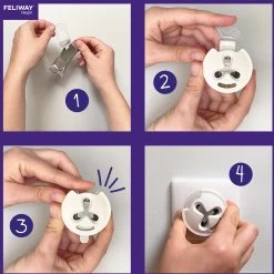 Open de verpakking van de cartridge en plaats deze in de speciale verdamper. Plug vervolgens de verdamper in het stopcontact. Doe dit in de ruimte waar uw kat het meeste is. Let hierbij op dat de verdamper vrij hangt. Plaats hem dan ook niet onder planken of achter gordijnen, meubels en deuren.