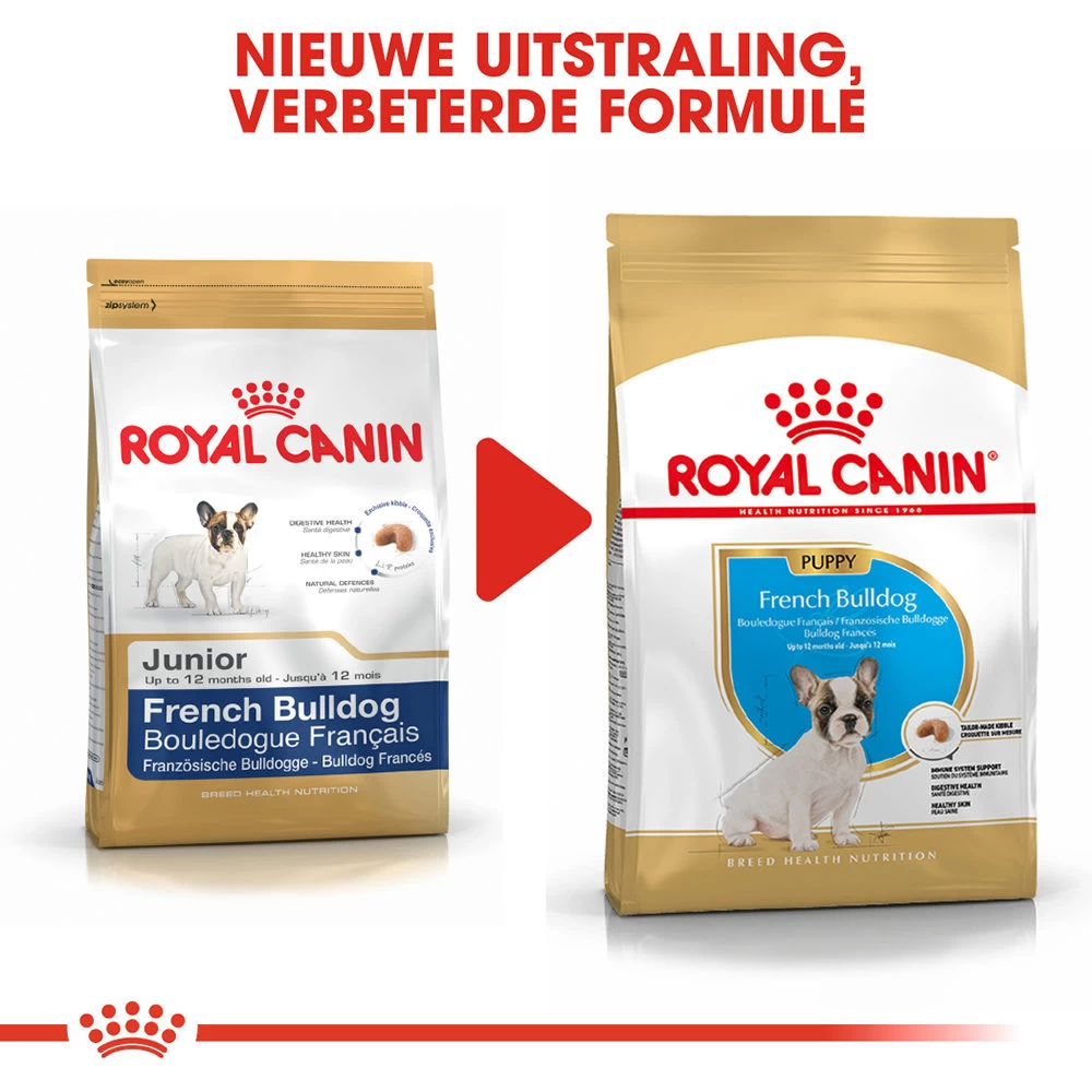 Royal Canin French Bulldog Junior is van verpakking en samenstelling gewijzigd. Alle Junior producten zullen vanaf voortaan Puppy heten. Daarnaast is het recept ook verbeterd.