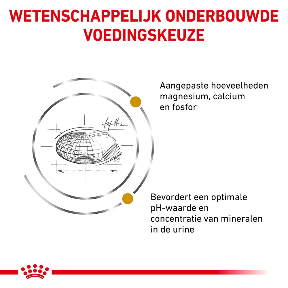 Bij honden en katten komen regelmatig aandoeningen aan de lagere urinewegen voor. Dit zijn aandoeningen aan de urineleiders, de blaas of de urinebuis. Een belangrijke oorzaak van urinewegproblemen is de vorming van blaasstenen. Wanneer uw huisdier last heeft van blaasstenen, zal uw dierenarts in de meeste gevallen een speciale dieetvoeding en/of medicijnen voorschrijven en een aantal verzorgingsadviezen geven. Royal Canin Urinary S/O is zo’n dieetvoeding. Royal Canin Urinary S/O Diet is speciaal ontwikkeld ter ondersteuning van de behandeling van aandoeningen van de lagere urinewegen. Royal Canin Urinary S/O Diet helpt bij het oplossen van struvietstenen/-kristallen (blaasgruis) en helpt de vorming van blaasstenen (struviet en calciumoxalaat) te verminderen.