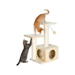 Op zoek naar een kleine krabpaal voor in huis? Dan is de krabpaal Valencia van Trixie een goede keuze! Deze krabpaal beschikt over verschillende ligplekken en is geschikt voor meer dan één kat. Het meubel is voorzien van pluche bekleding en de stammen zijn omhuld met natuursisal. De nagels van uw kat/katten zullen goed slijten! Er is een schuilplaats beschikbaar waar de kat aan twee kanten in kan. Binnen ligt de kat heerlijk zacht door de pluche bekleding. Als kers op de taart is er ook nog een leuke pluche balletje aan elastiek waar de kat lekker mee kan spelen!
