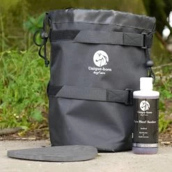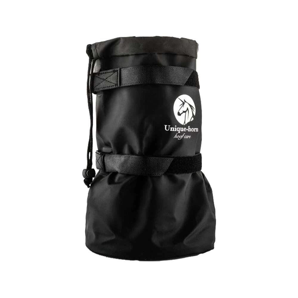 Hoefbevangenheid en hoefzweer, twee dingen waar u zo snel mogelijk vanaf wilt zijn. De Unique-horn Hoof Soaking Bag is ideaal voor de behandeling hiervan. Een klein scheutje Unique-horn Pure Hoof Soaker en water in de zak en het weken kan beginnen! De Hoof Soaking Bag is gemaakt van een waterdicht en stevig zeildoek, gevoerd met een gecoate laag nylon, waardoor het water goed in de zak blijft.