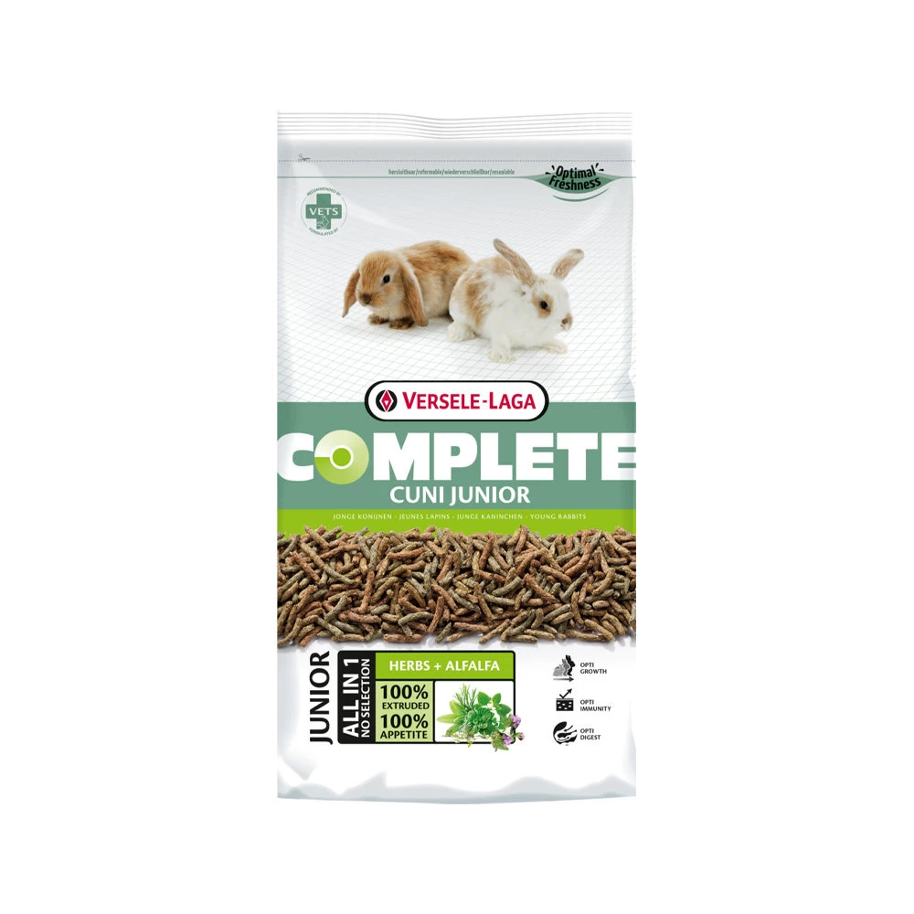 De Complete Cuni Junior voeding van Versele-Laga is speciaal ontwikkeld voor jonge konijnen tot 6-8 maanden. Het is een all-in-one voeding wat voorkomt dat uw konijn gaat selecteren. Dit zorgt ervoor dat uw jonge konijntje alle essentiële voedingsstoffen binnenkrijgt. De voeding bevat geen granen, wel een hoog gehalte aan calcium, eiwitten en vitamines. Bestandsdelen die een optimale groei van jonge konijnen helpt ondersteunen. Ook bevat het lange vezels en is het verrijkt met kruiden voor een optimale maag- en darmwerking.