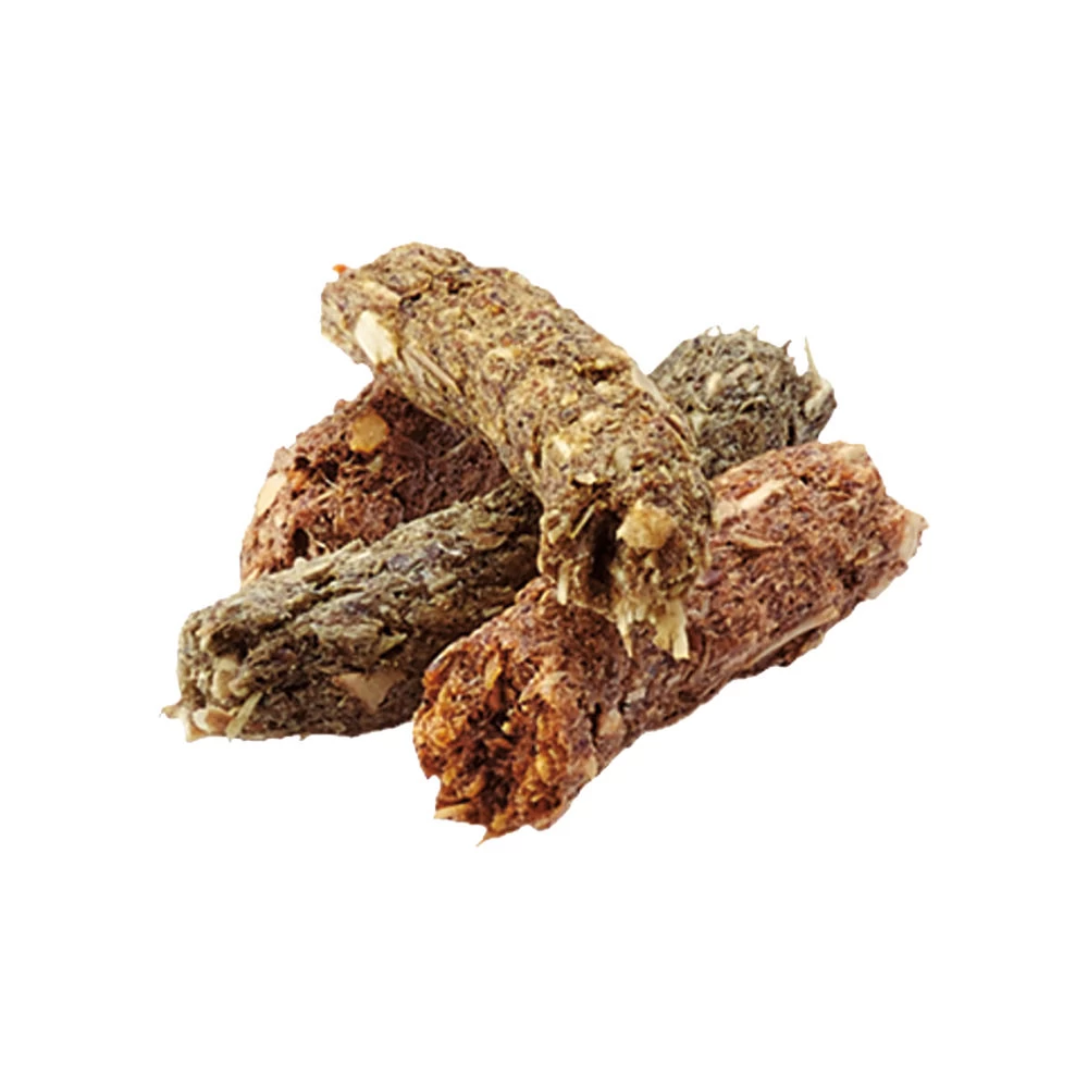 Plantaardige bijproducten (alfalfa 35%), plantaardige eiwitextracten, zaden (lijnzaad 2%), mineralen, fructo-oligosacchariden (0,3%), goudsbloem, yucca.